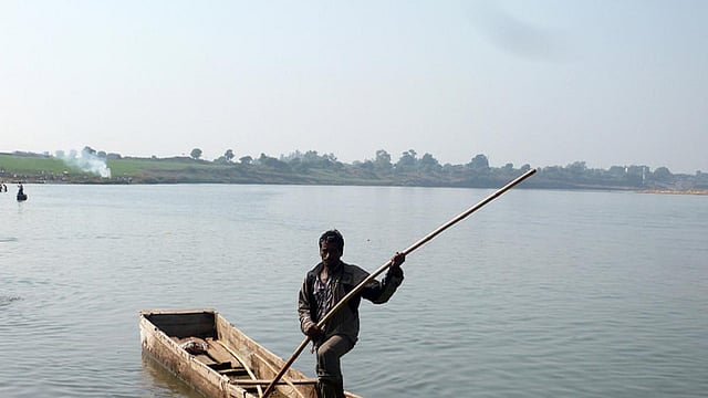 नर्मदा में पानी बहुत कम है। धार भी पतली हो गई है। मेरा बचपन से ही नर्मदा से रिश्ता रहा है। मेरी बुआ होशंगाबाद जिले में नर्मदा किनारे गाँव की थीं और हम बचपन में उनके घर जाते थे।