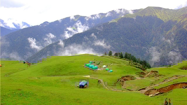 घना वन है, पेड़ों की हरियाली है, हरियाली गंवा कर भूरे हो चुके पत्ते, चढ़ाई वाले रास्ते पर बिखरे हुए हैं। हम दो लोगों की आवाज के अलावा कोई आवाज नहीं है। नील गंगा के वेगवान पानी का स्वर भी धीरे-धीरे दूर हो रहा है। एक खामोशी है, लेकिन यह खुशगवार खामोशी है। चारों ओर बिखरी हरितिमा की छटा को आँखों और साँसों में समेट लेने को जी चाहता है। पर चढ़ाई पर चलते-चलते लम्बा अरसा बीत रहा है तो यह व्यग्रता भी घेर रही है कि आखिर और कितना चलना होगा ? इस बियाबान जंगल में हम दो प्राणी कब तक चढ़ाई चढ़ते रहेंगे ? चढ़ाई का ओर-छोर कहीं नजर भी आएगा या नहीं! और लगभग छह-साढ़े छह घंटे, चलने के बाद हम पहले दिन के पड़ाव स्थल-गैरोली पातल पहुँचे। गैरोली पातल जो वांण से 8-10 किलोमीटर की दूरी पर है। स्थानीय लोगों से पूछा कि उन्हें कितना वक्त लगता है यहाँ तक पहुँचने में तो अलग-अलग लोगों ने डेढ़ से तीन घंटे तक की अवधि बताई। पर चलने के मामले में बचपन में पढ़ी हुई कछुए और खरगोश की कहानी में से कछुआ अपना प्रेरणास्रोत है, इसलिए कछुआ गति अपनी प्रिय गति है। खासतौर पर पहाड़ चढ़ते हुए तो हॉर्सपावर की तर्ज पर अपनी चाल में कछुआ पावर अनायास ही समा जाती है।
