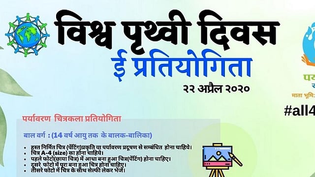 आप अपनी ड्राइंग के माध्यम से अपने पर्यावरण प्रेम की अभिव्यक्ति चित्रों और मनमोहक रंगों में उकेर सकते हैं और हमारे साथ घर बैठे साझा कर सकते हैं। आप हमें अपनी प्रविष्टि 13 अप्रैल से 23 अप्रैल तक भेज सकते हैं। इस प्रतियोगिता में घर बैठे ही भाग ले सकते हैं। इसमें निम्न 6 प्रतियोगिताएं सम्मिलित है -