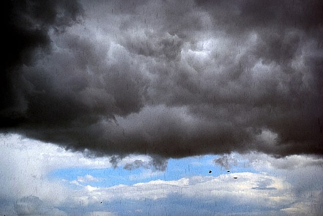 मध्य-पूर्व में चल रहे युद्ध से फैलते भरंकर वायु प्रदूषण के बीच इलाके में कुछ इस तरह के काले बादल घुमड़ कर काले रंग के पानी की बारिश कर रहे हैं।