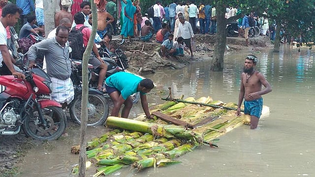 वैसे महानंदा का तटबंध भी टूटा है, पर यह छानबीन का विषय होगा कि तटबंध भीतर की नदी ‘महानंदा’ के पानी की वजह से टूटा या बाहर से बरसाती पानी के दबाव में। पूर्वी बिहार के चार जिले-अररिया, पूर्णिया, किशनगंज और कटिहार के जिला मुख्यालयों समेत कई शहरों, बाजारों में कहीं घूटने भर तो कहीं कमर भर पानी है। असम की ओर जाने वाली सड़क और रेल मार्ग बंद है। बताते हैं कि राजमार्ग पर पूर्णिया के गुलाबबाग के पास असम जाने वाले ट्रकों की कतार 25 किलोमीटर लंबी हो गई है।