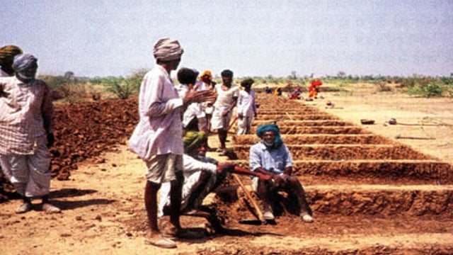 लापोड़िया गांव में आजादी से पहले तक बीस खाईयां थीं। अच्छी फसल आने पर हर घर से इसमें एक निश्चित मात्रा में अनाज डालकर बन्द कर दिया जाता था। जब तक गांव की सभी खाईयां भर नहीं जाती थीं, तब तक गांव से एक दाना भी बाहर बेचा नहीं जा सकता था। इन खाईयों में तीन वर्ष तक अनाज सुरक्षित रखा जाता था। यदि इस अवधि में अकाल नहीं पड़े तो खाई खोलकर उसका अनाज वापस किसानों में वितरित हो जाता था। यदि अकाल आ ही गया तो ये खाईयां उस संकट को सहने के लिए खोल दी जाती थीं। अकाल का संकट आने पर खाई खोलने का निर्णय गांव के दो पटेल और ठिकानेदार की एक छोटी सी बैठक में तुरन्त लिया जाता था। उसके बाद गांव के घरों की जरूरत देखते हुए एक के बाद एक खाई खुलती जाती थी और अनाज का वितरण होता जाता था। एक मोटे हिसाब से प्रति परिवार प्रति माह कोई एक मन अनाज बांटा जाता था। अकाल समाप्त होने पर अच्छी पैदावार आने पर इन्हीं परिवारों से चालीस किलो के बदले 50 किलो अनाज वापस लेकर फिर से खाई में सुरक्षित रख दिया जाता था।