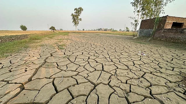 उजड़े हुए खेतों की तरफ जाते किसान