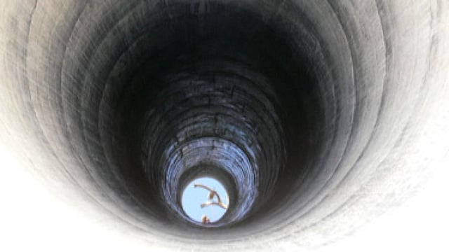 गहरा कुँआ जिसके पानी की स्वच्छता स्पष्ट दिखाई दे रही है।