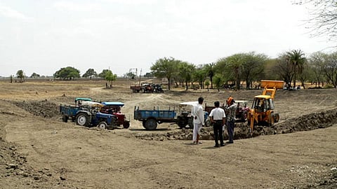 यह नजारा है मध्य प्रदेश के दिल कहे जाने वाले मालवा इलाके के इन्दौर जिले के गाँवों का। हमारी गाड़ी जिस भी पक्की–कच्ची सड़क से गुजरी, हर तरफ यही दृश्य था। दूर–दूर तक सूने पड़े खेत और उनके बीच बने तालाबों से गाद और मिट्टी खोदती मशीनें। जैसे गाँवों में कोई उत्सव मनाया जा रहा हो।